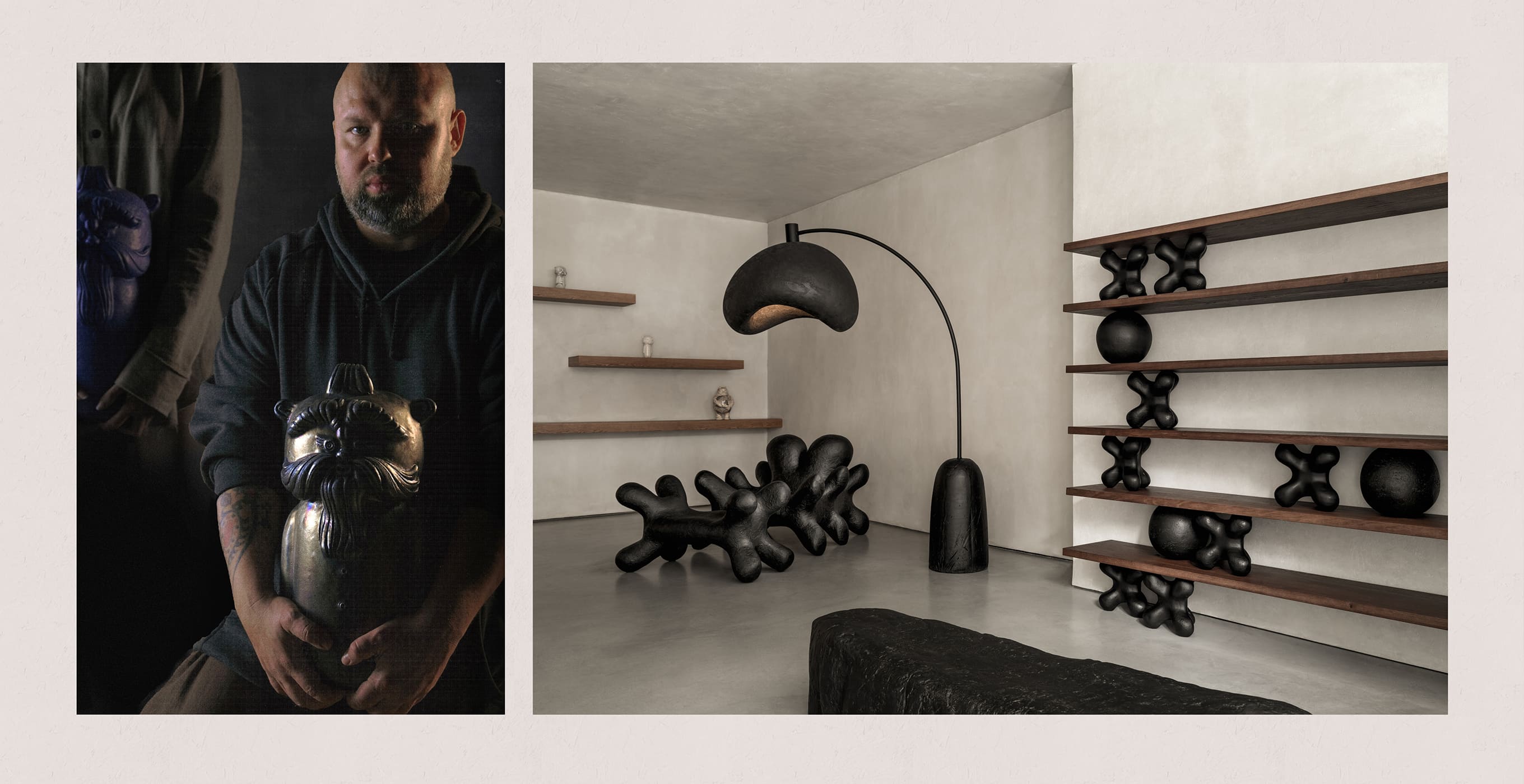 Сергій створює колекційний дизайн, керамічні предмети інтер’єру, що водночас є артскульптурами. Це і надзвичайні кремезні меблі, крісла та столи позачасового дизайну й брутальної фактури, що виліплені з цільного шматка глини вручну та випалені у величезній печі за секретними техніками. І майстерні артсвітильники вигадливих природних форм з купою технічно неможливих деталей тощо.