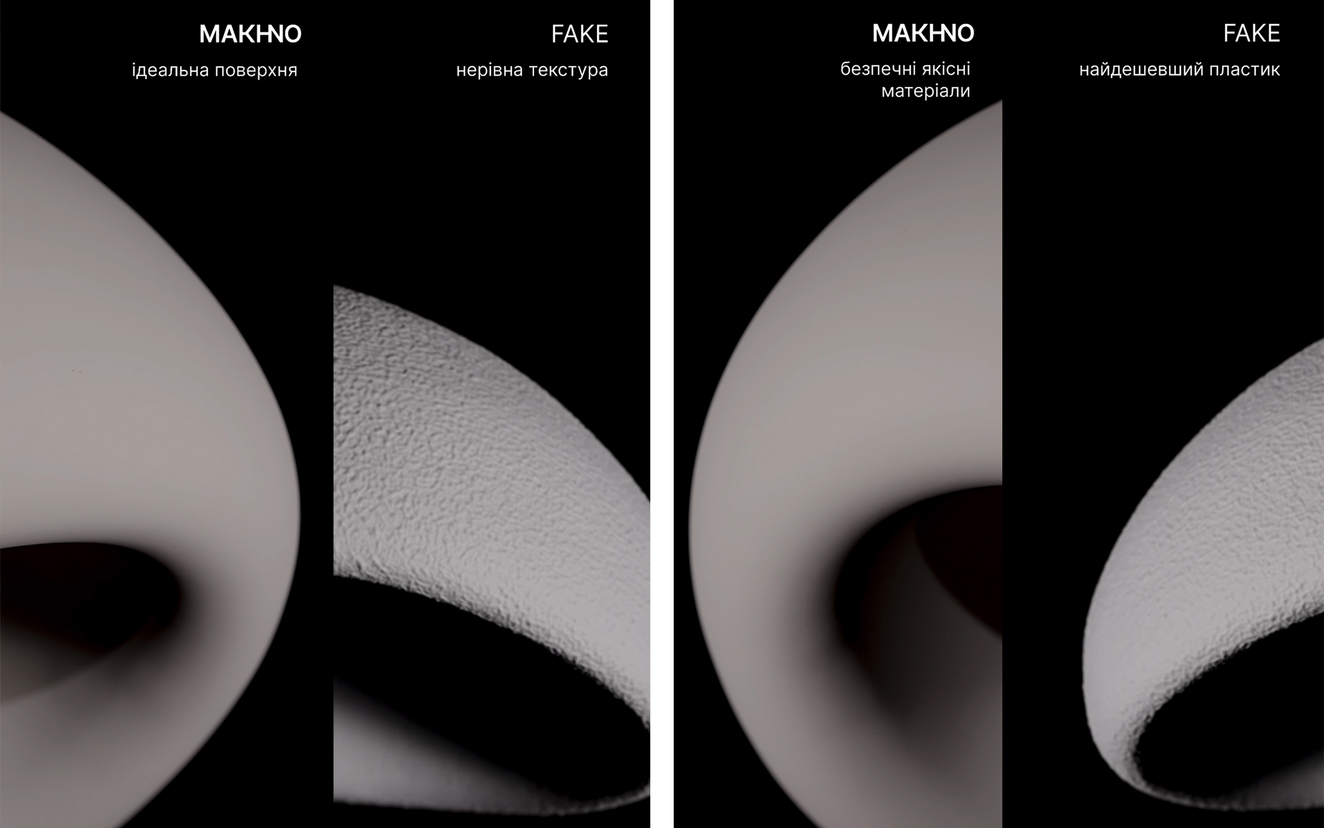 Головна відмінність: форма. Копія не може повторити форму Khmara. Ніколи. Оригінал має складну, вивірену форму. У підробок вона завжди спрощена й неточна.