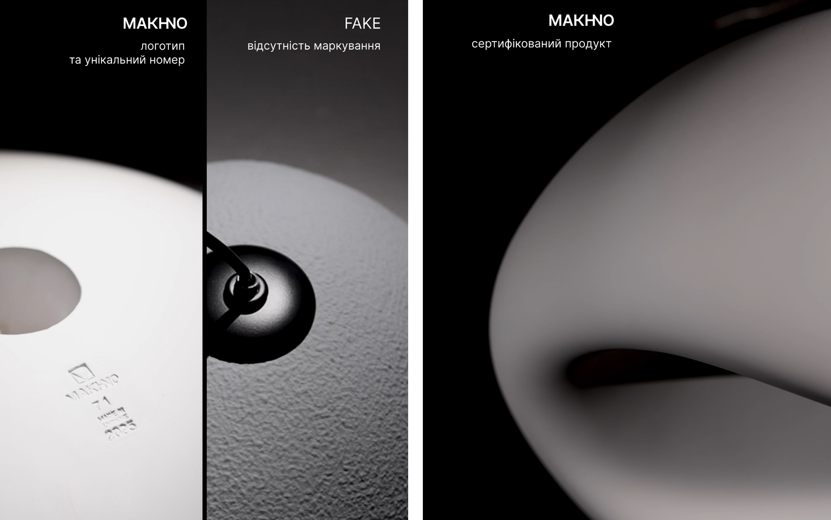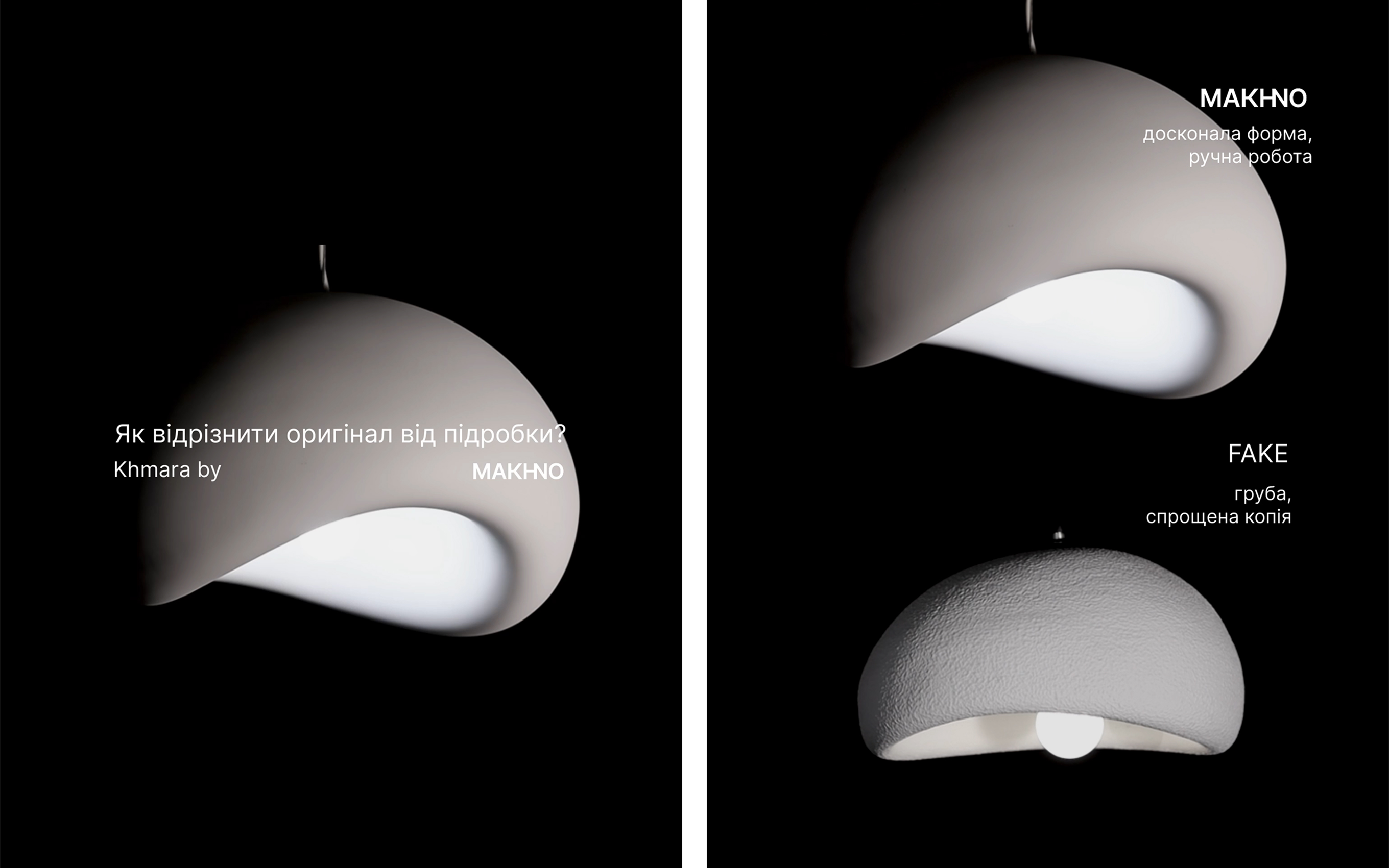 Khmara — один з найвпізнаваніших світильників студії MAKHNO. Її копіюють маркетплейси, шоуруми й навіть українські виробники. Ми не будемо тут говорити про етику чи авторське право — хоча маємо юридично захищену торгову марку. Краще розкажемо, як не купити підробку.