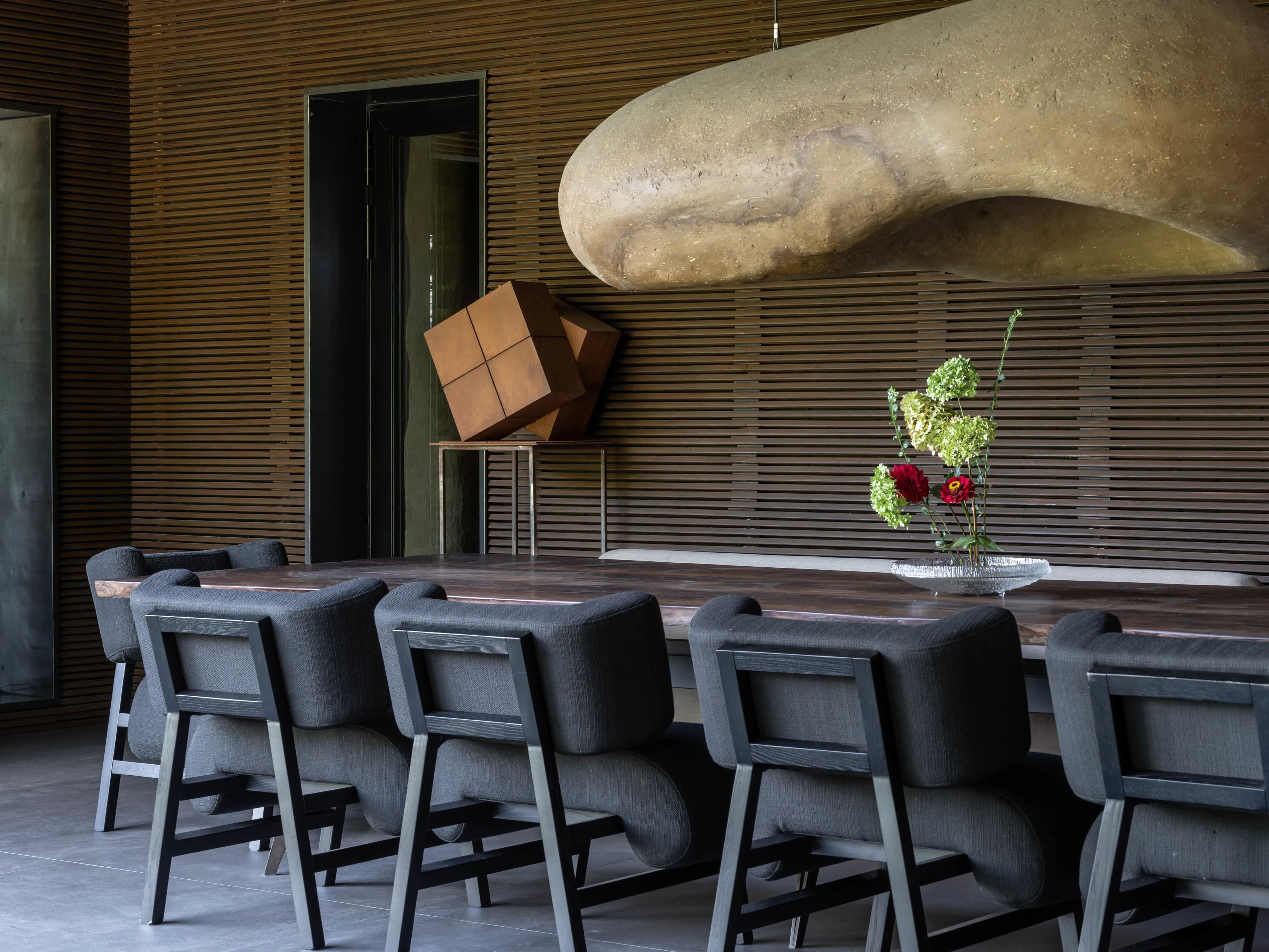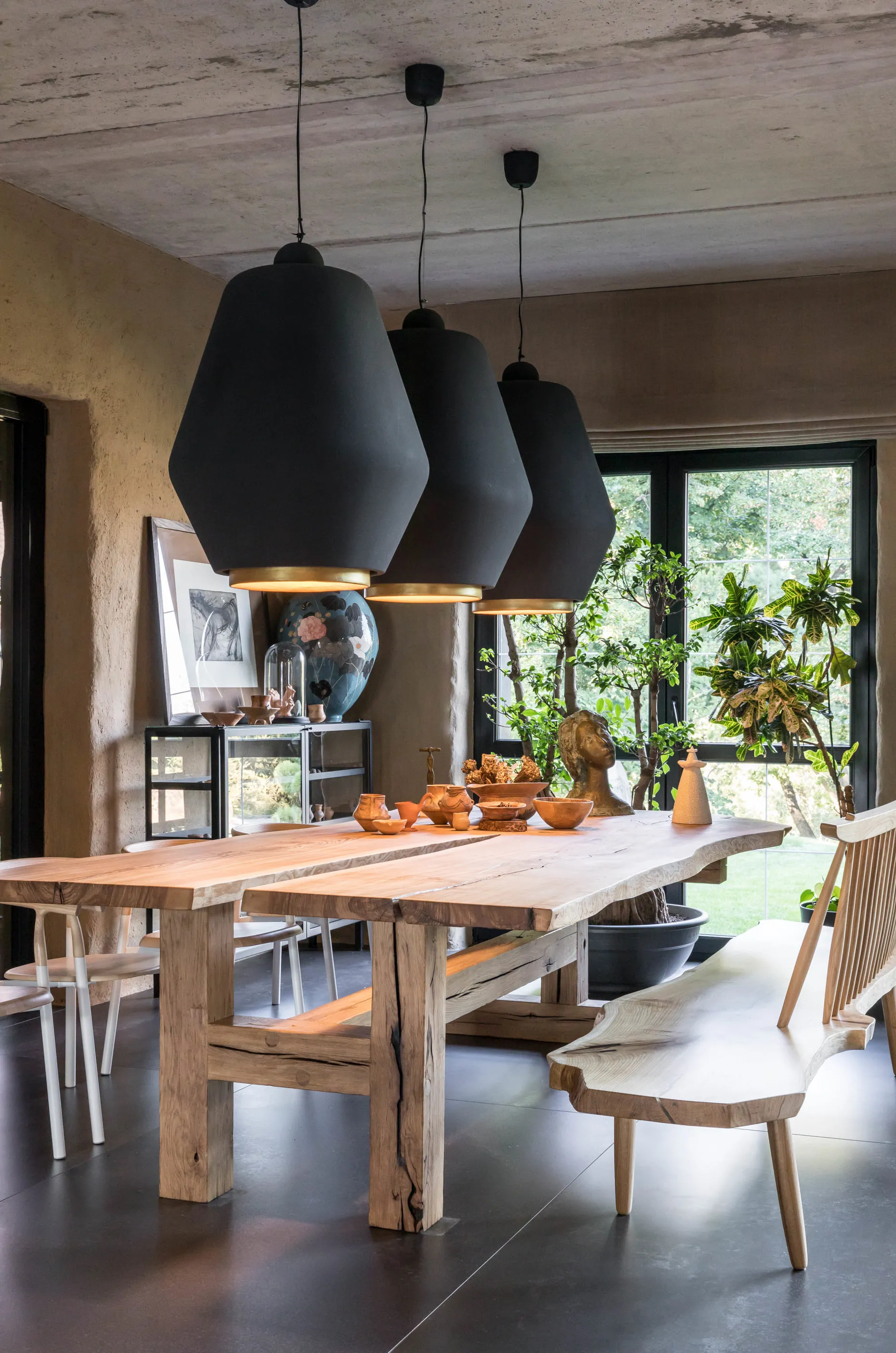 Обідня зона — улюблена в цій сім’ї. Вона співає оду дереву — теплому, простому, досконалому. З кожного місця за столом відкривається чудова перспектива — на вітальню, сад або терасу. Якщо Сергія запитати, що для нього значить Японія — першою називає чайну церемонію. У цьому будинку чашками для чаю користуються частіше, ніж винними келихами.