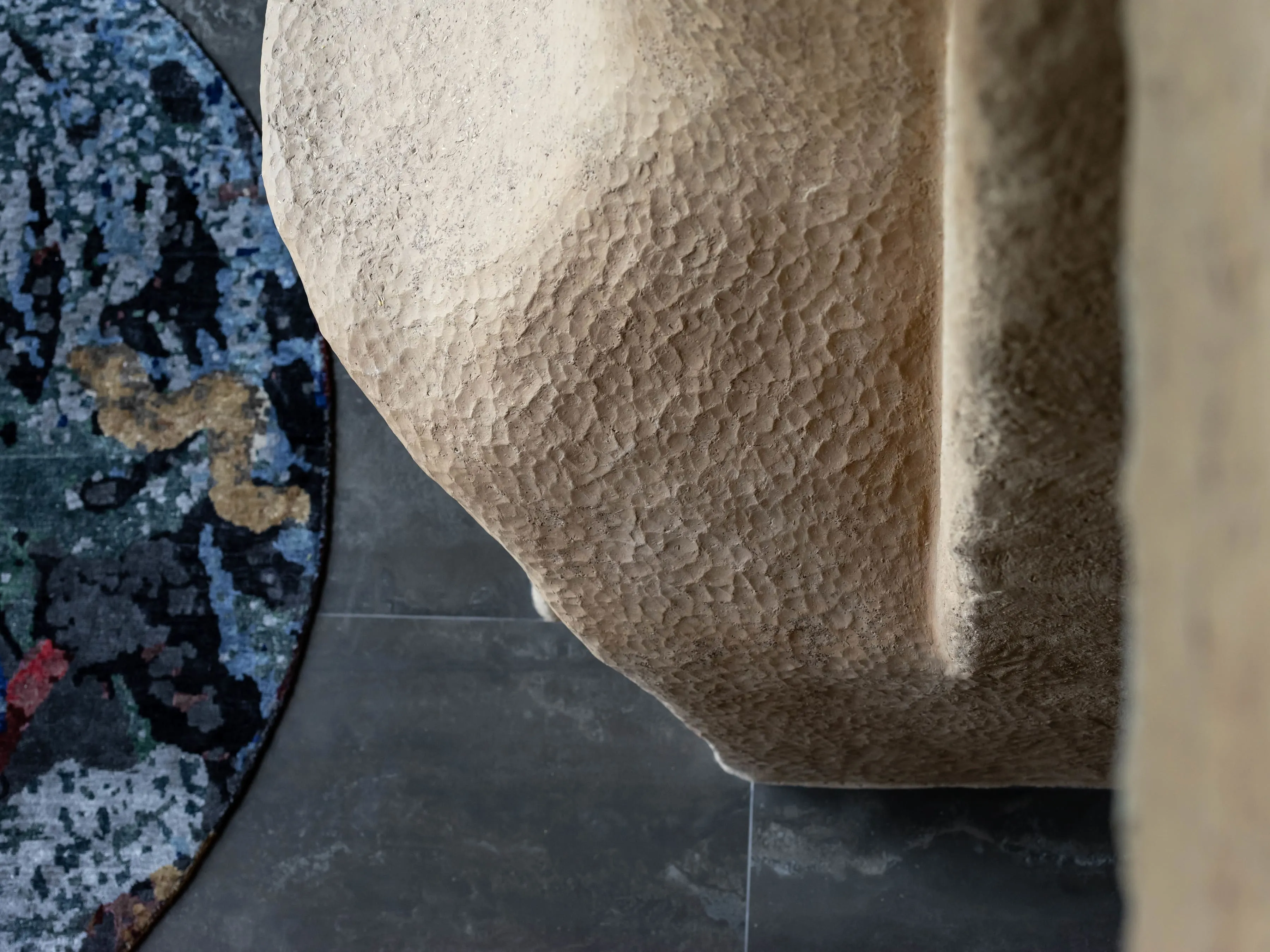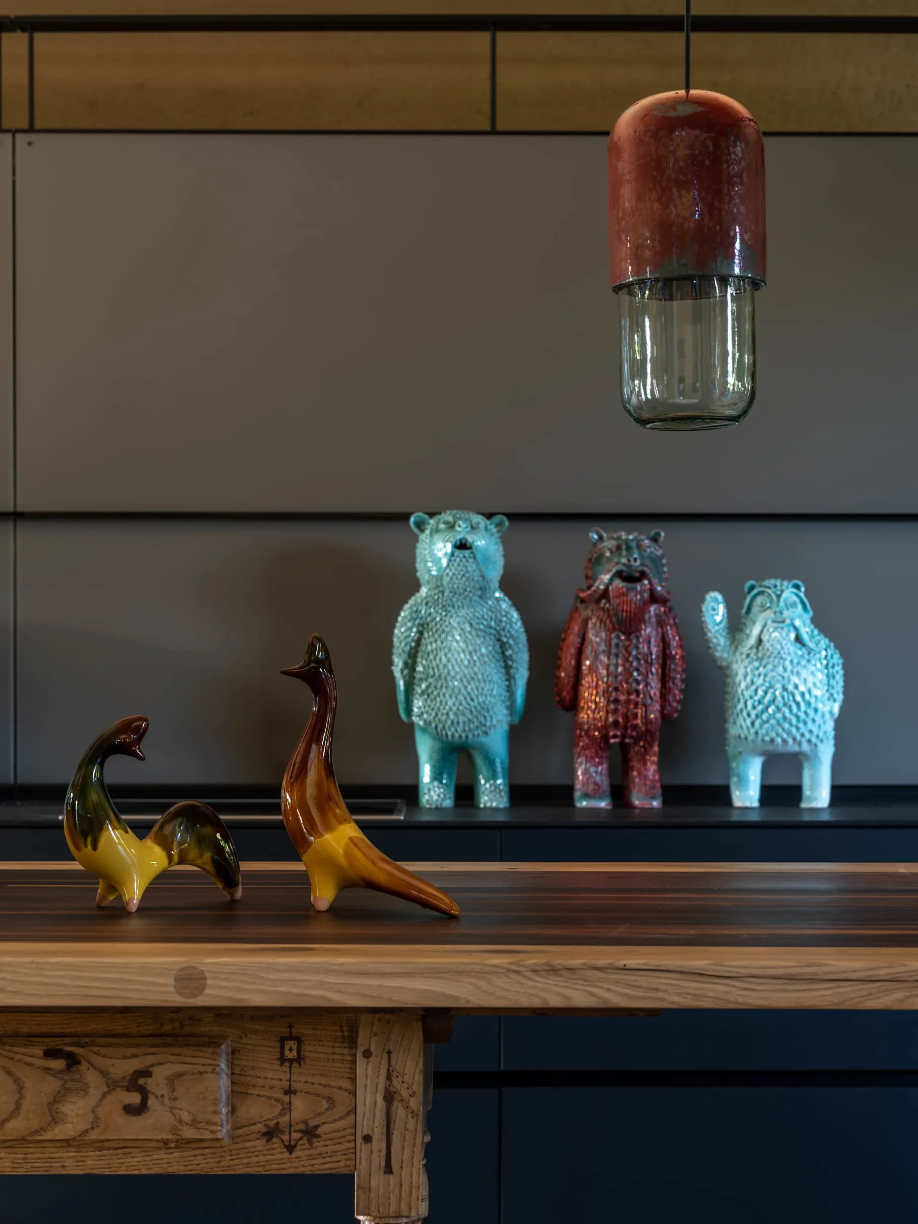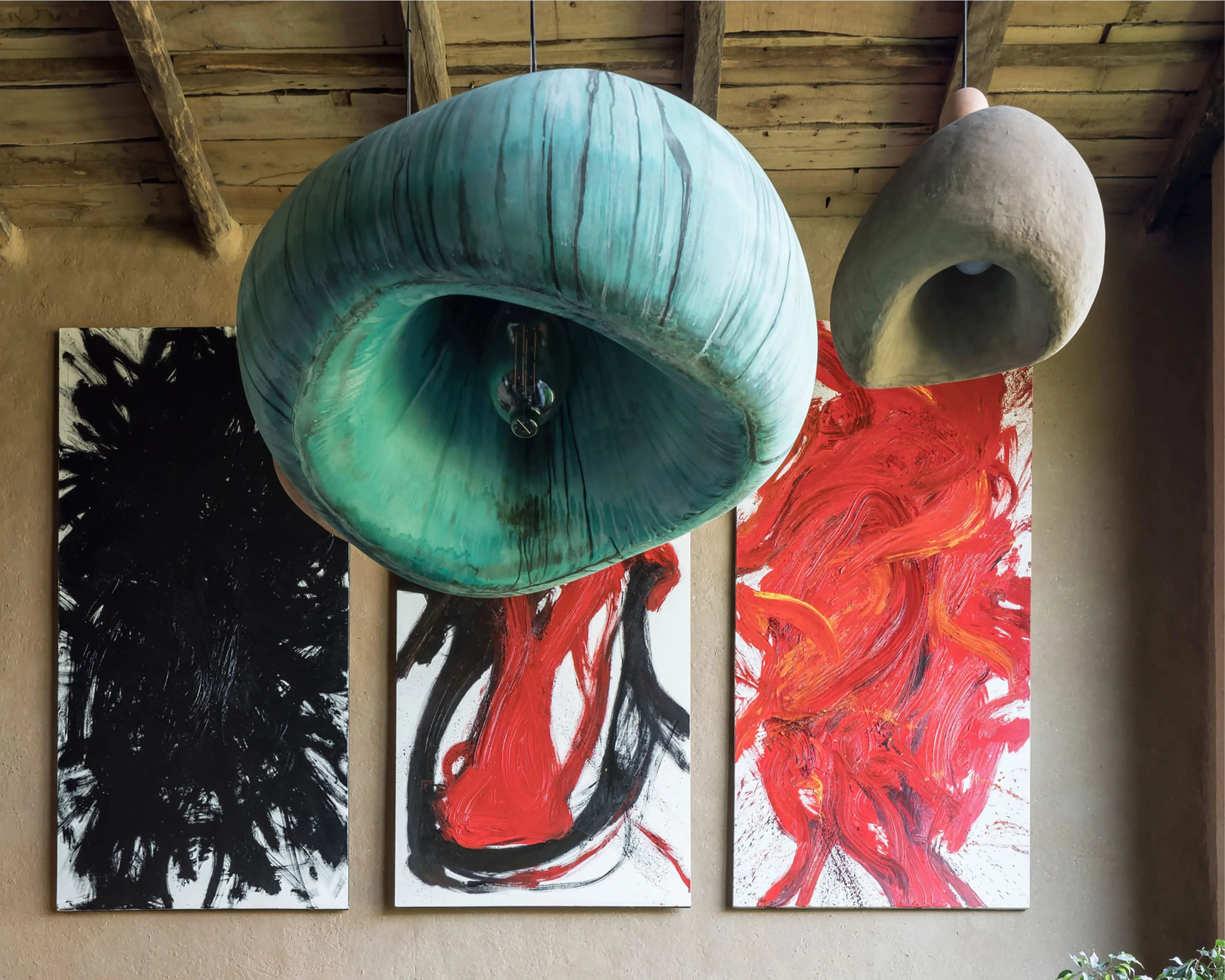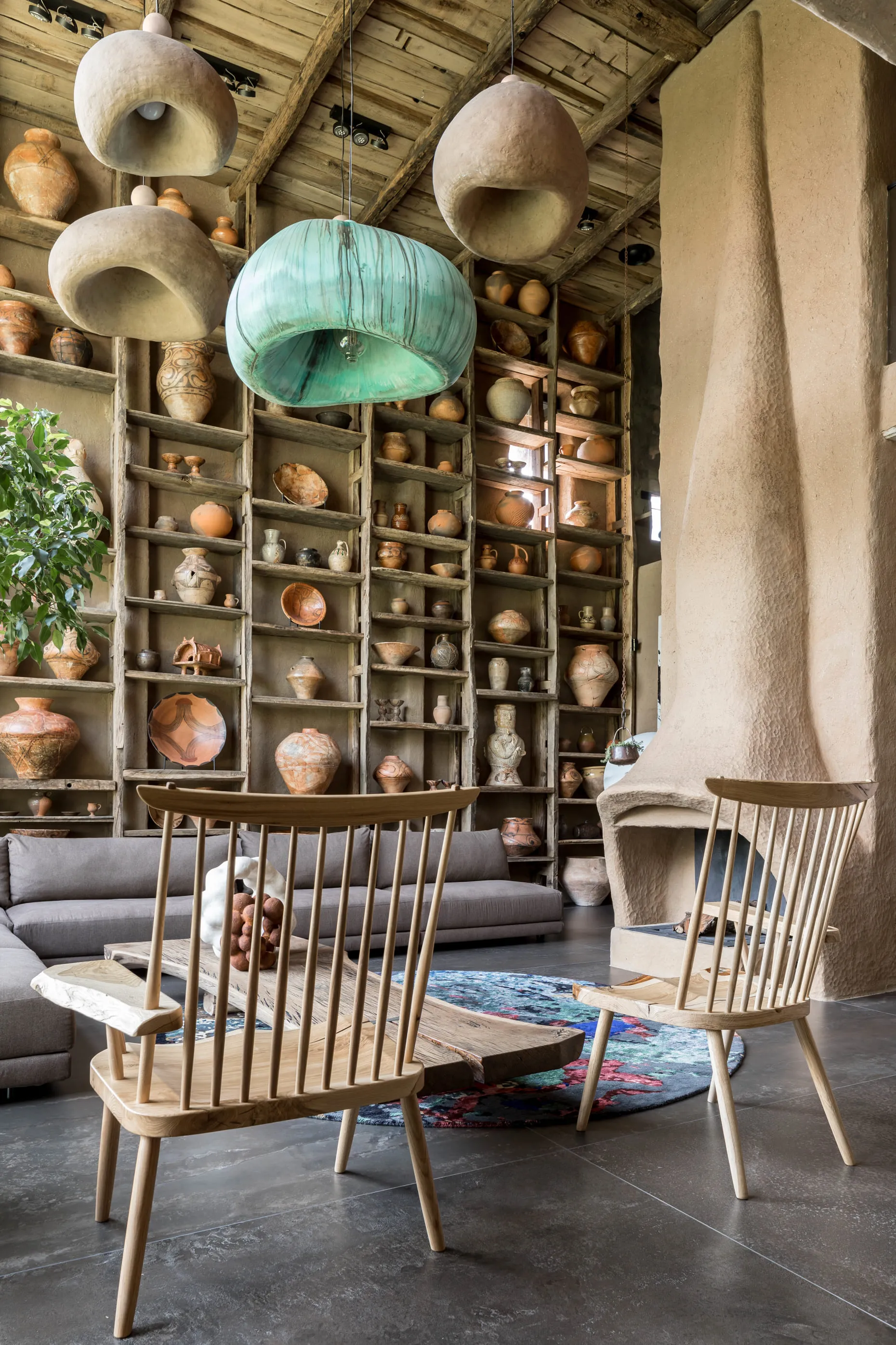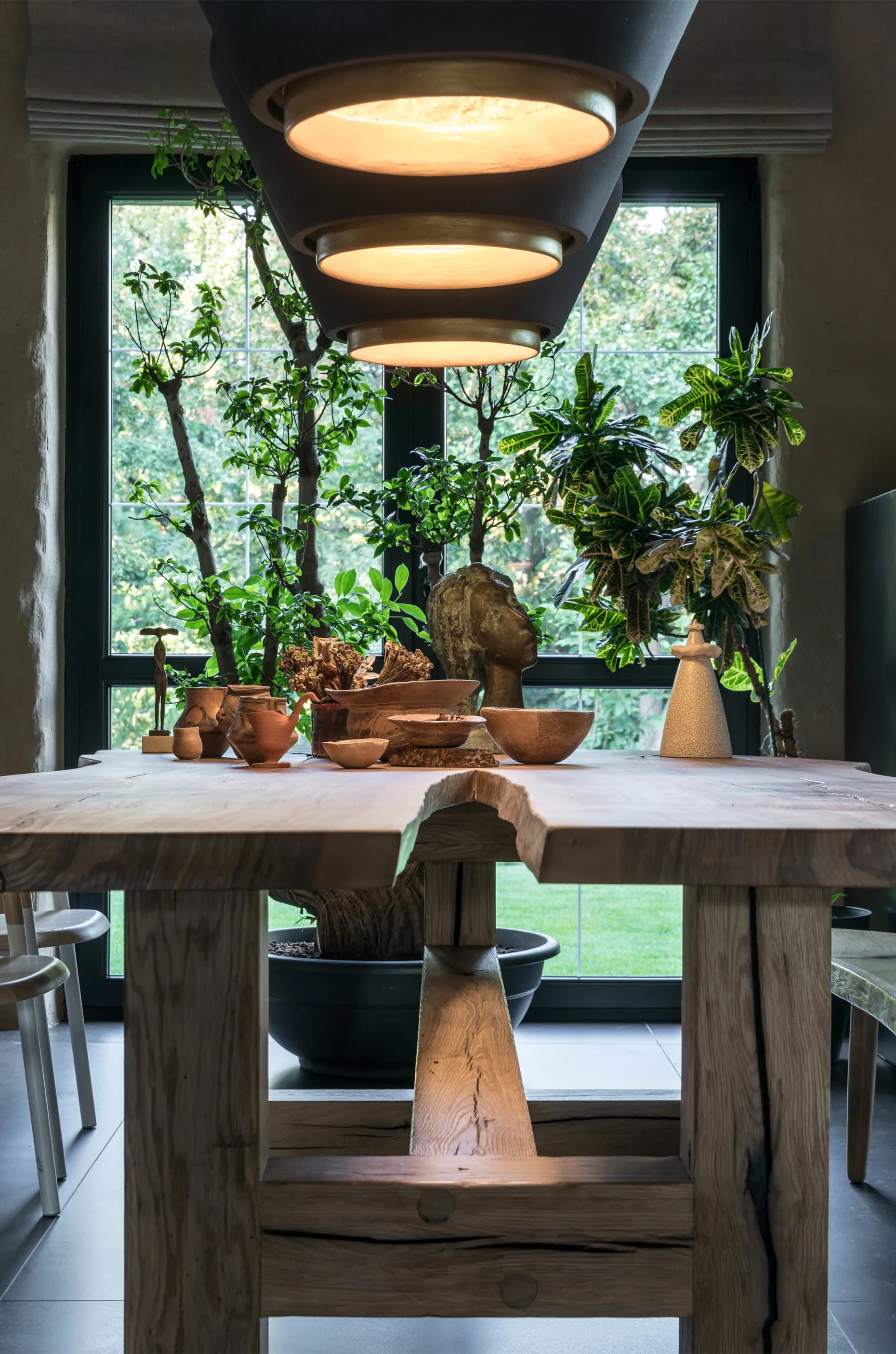 Кераміка. Усе освітлення в домі — це авторський дизайн від MAKHNO Studio. Зроблене вручну, в обмеженій кількості, однією людиною для іншої. У головній вітальні — наші KHMARA, з яких ніколи не падає дощ і які також можна знайти у галереї в Парижі. Раковини та дитяча ванна також створені у керамічній майстерні Сергія Махна.