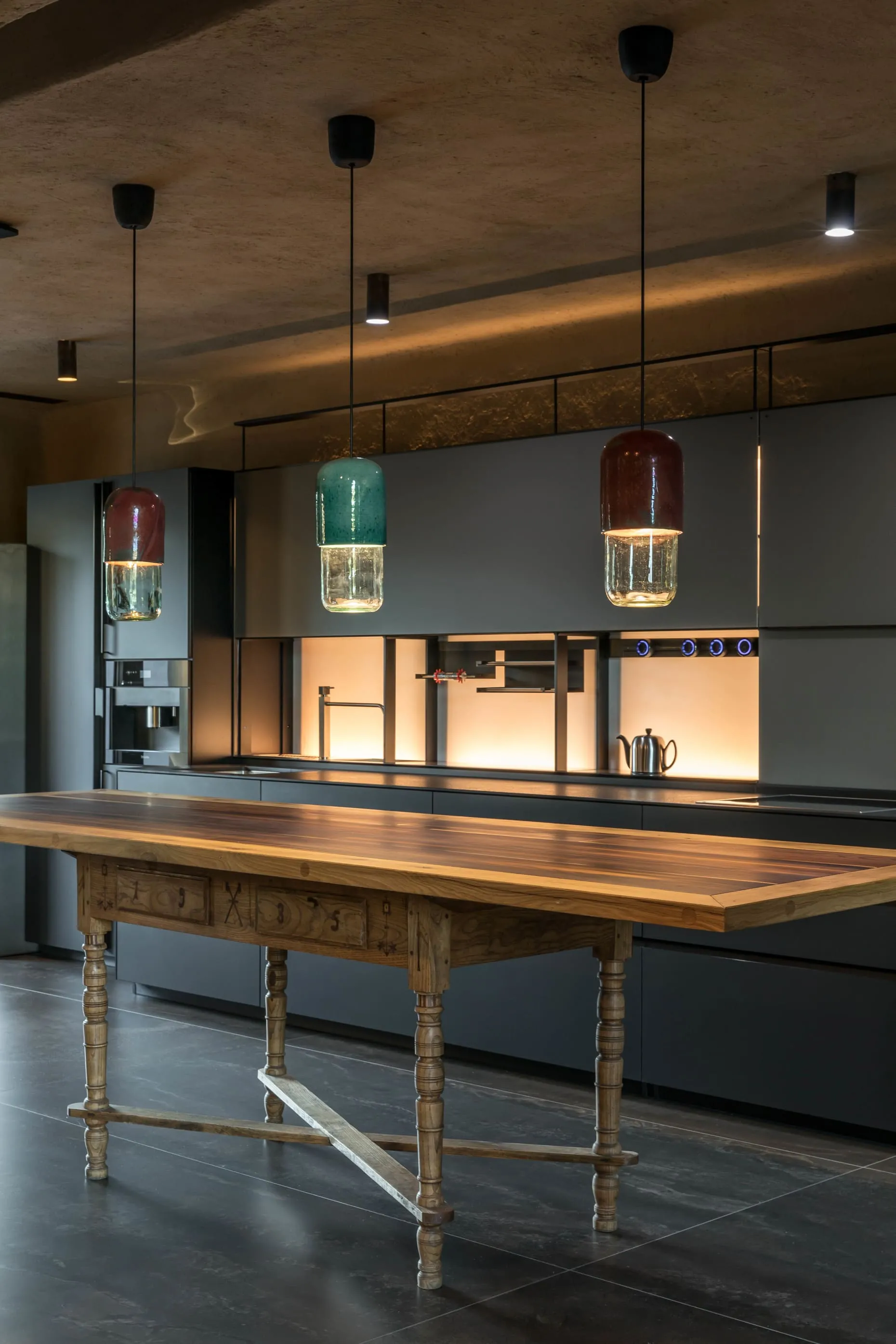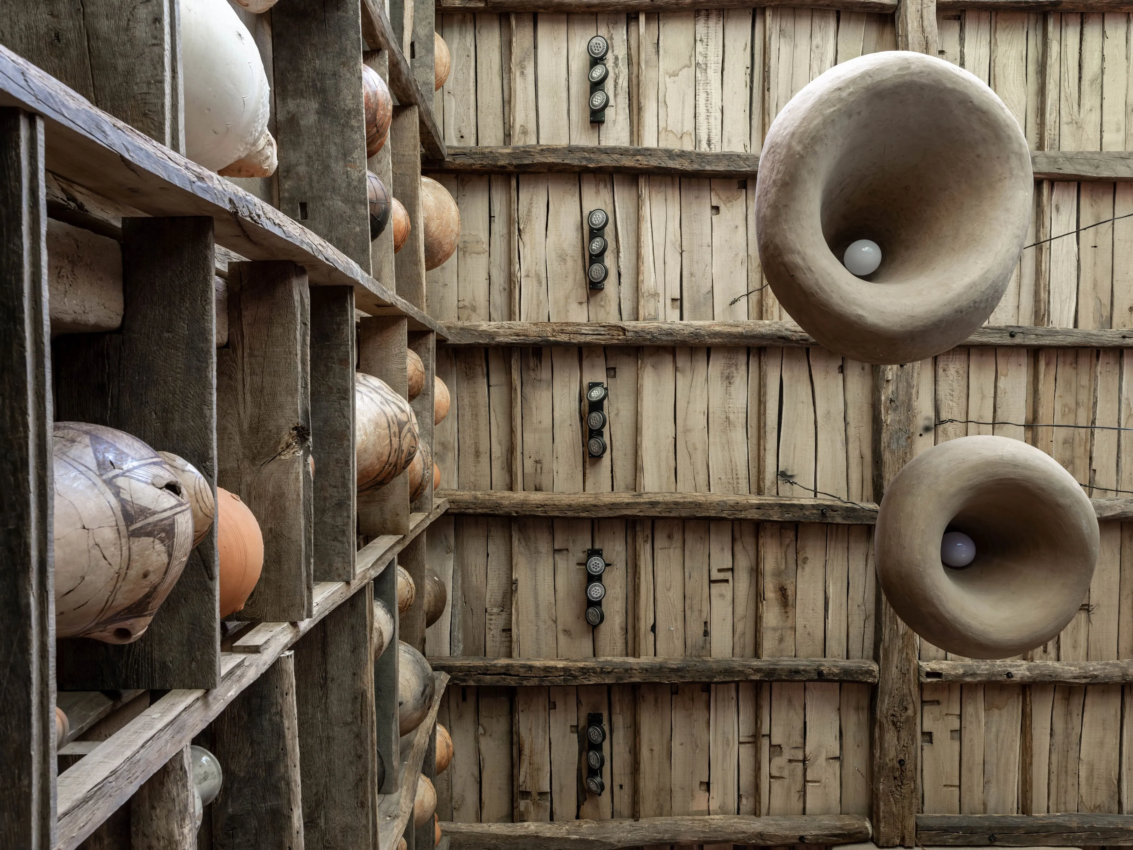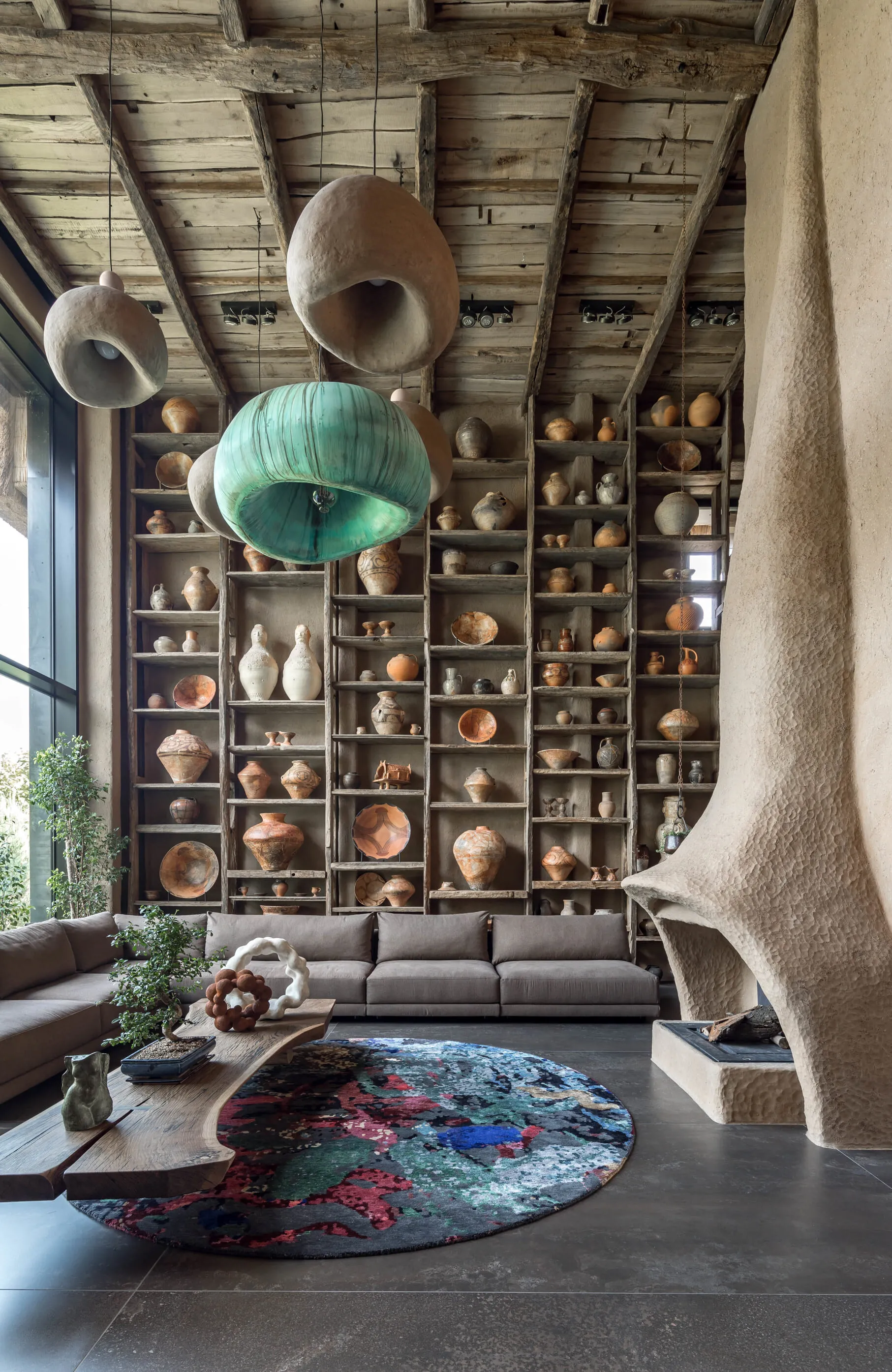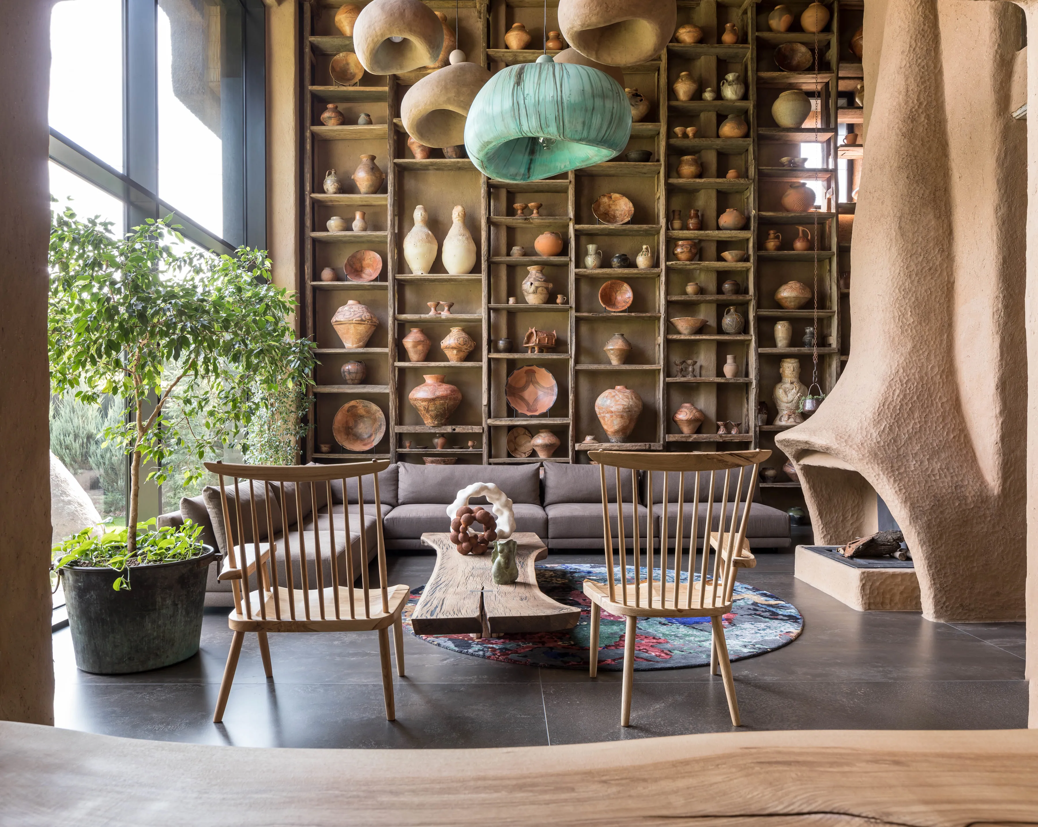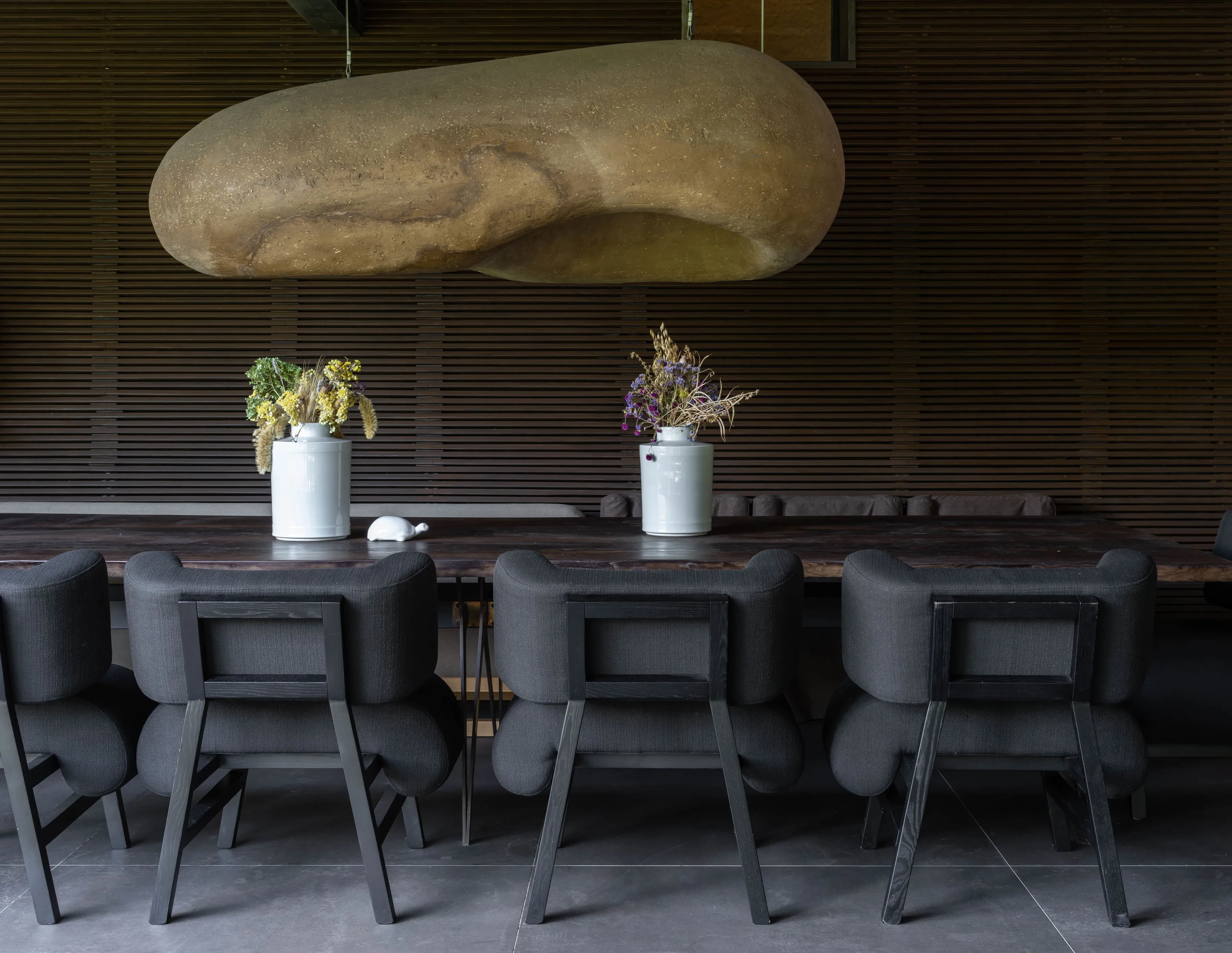 Кераміка. Усе освітлення в домі — це авторський дизайн від MAKHNO Studio. Зроблене вручну, в обмеженій кількості, однією людиною для іншої. У головній вітальні — наші KHMARA, з яких ніколи не падає дощ і які також можна знайти у галереї в Парижі. Раковини та дитяча ванна також створені у керамічній майстерні Сергія Махна.