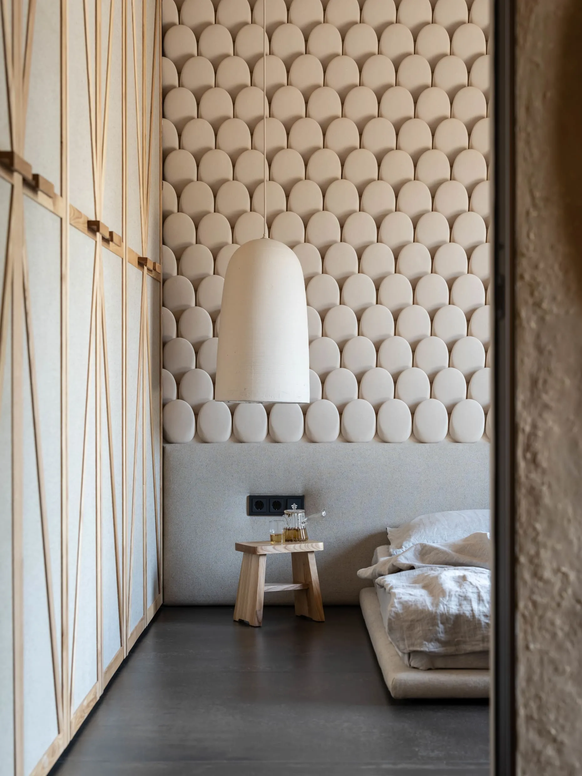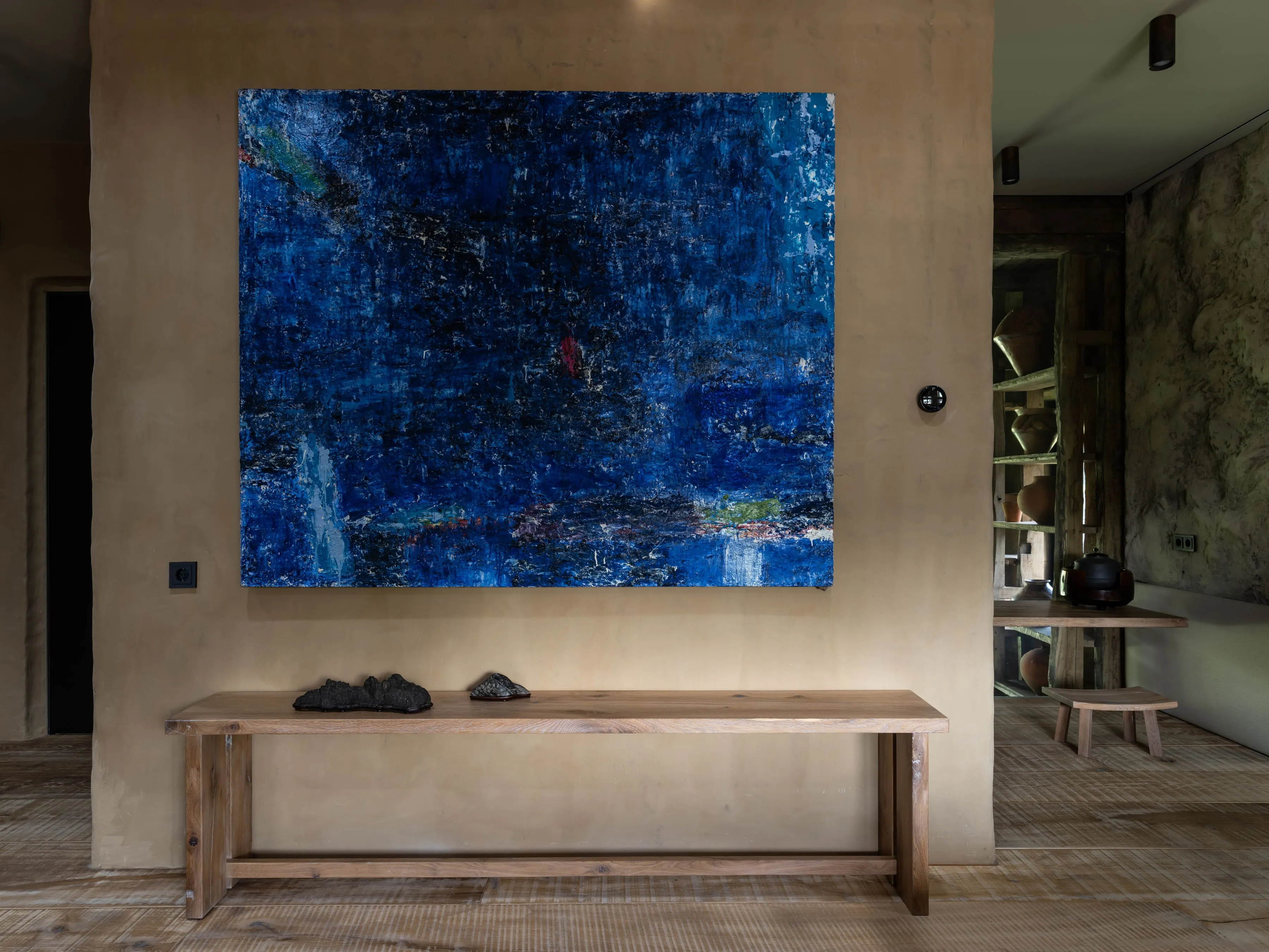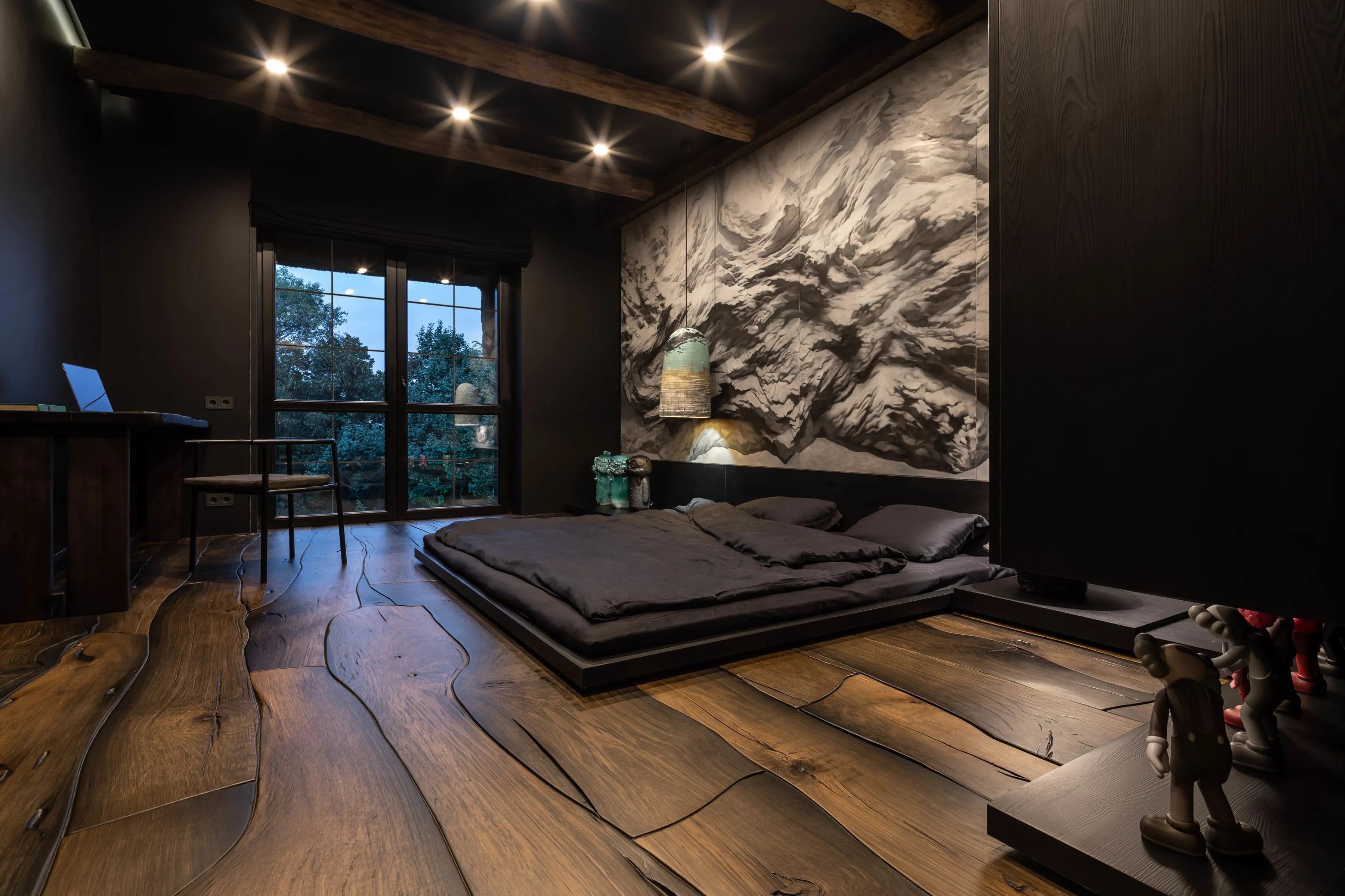 В узголів’ї ліжка-татамі — традиційний для філософії вабі-сабі монохромний живопис в стилі Сумі-е — відсторонені, далекі пейзажі, ніяких золотих рам.