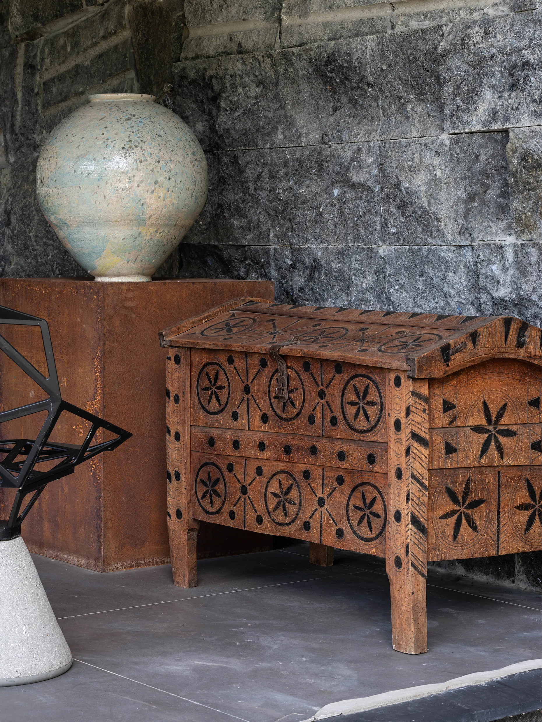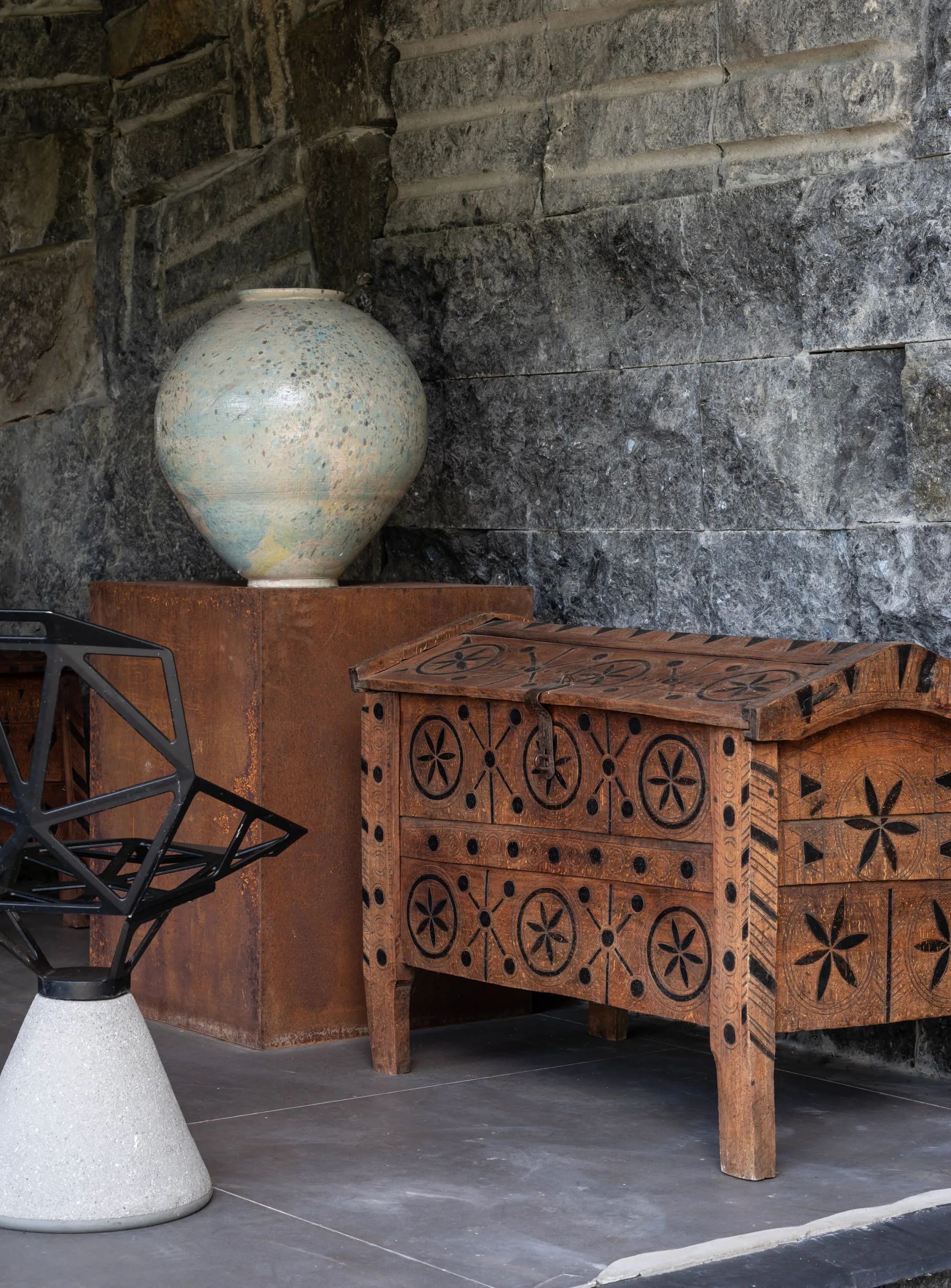 З оздоблення тут керамічна плитка 16 століття та янголи-охоронці над дверима у дитячі спальні. З вікна відкривається краєвид на другий рівень кам’яного саду — його облаштували на даху тераси. Це аналогія одного з найвідоміших японських садів — кам’яного саду Рьоан-дзі, що в Кіото. Камені та пісок у Рьоан-дзі тут ніби море і суша, дві нероздільні сутності. 15 великих каменів саду викладені таким чином, що з будь-якої точки галереї, як не старайся, а побачити разом можна не більше 14 каменів. Вважається, що побачити всі 15 може тільки людина, яка досягла справжнього просвітлення.