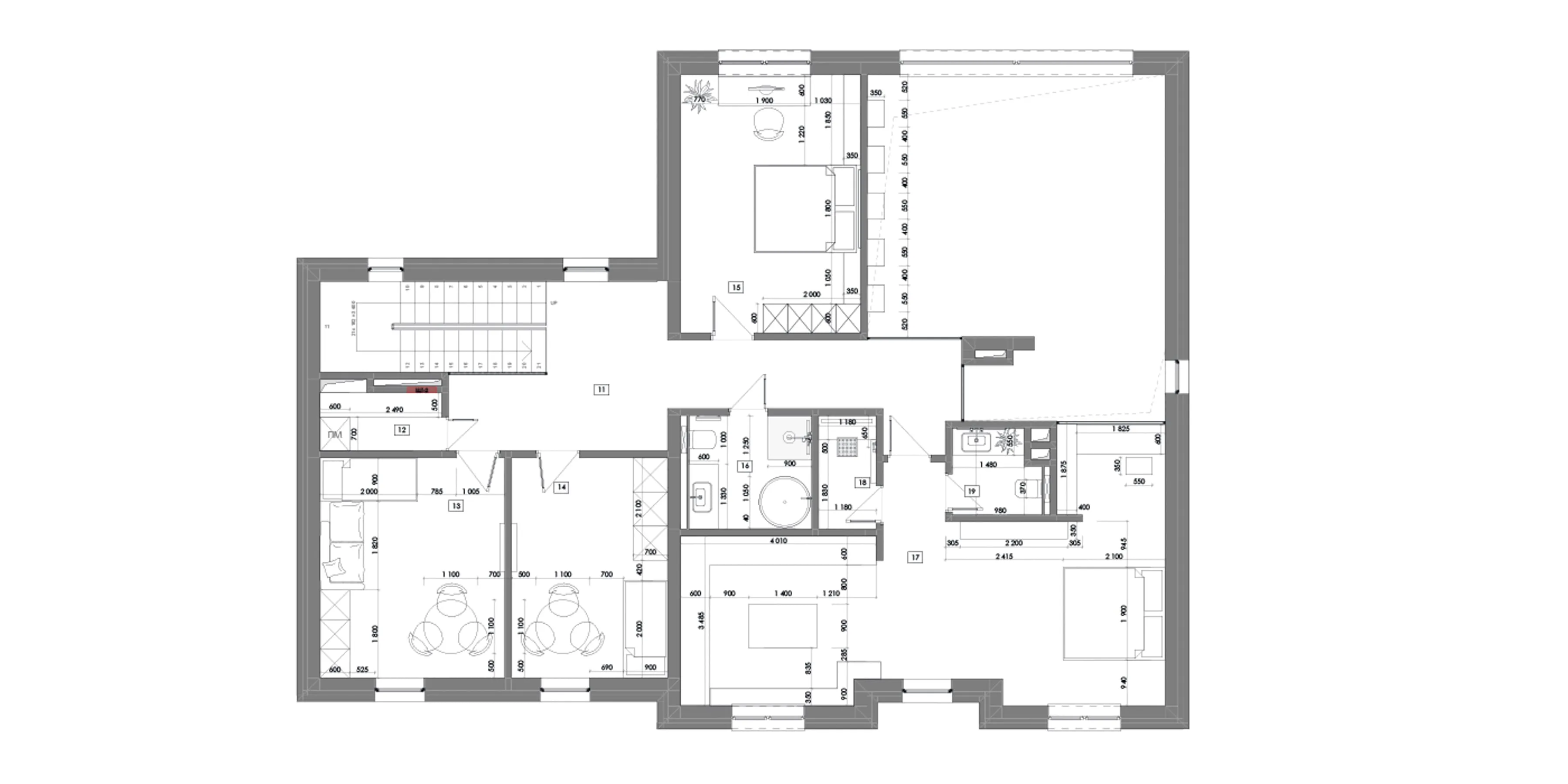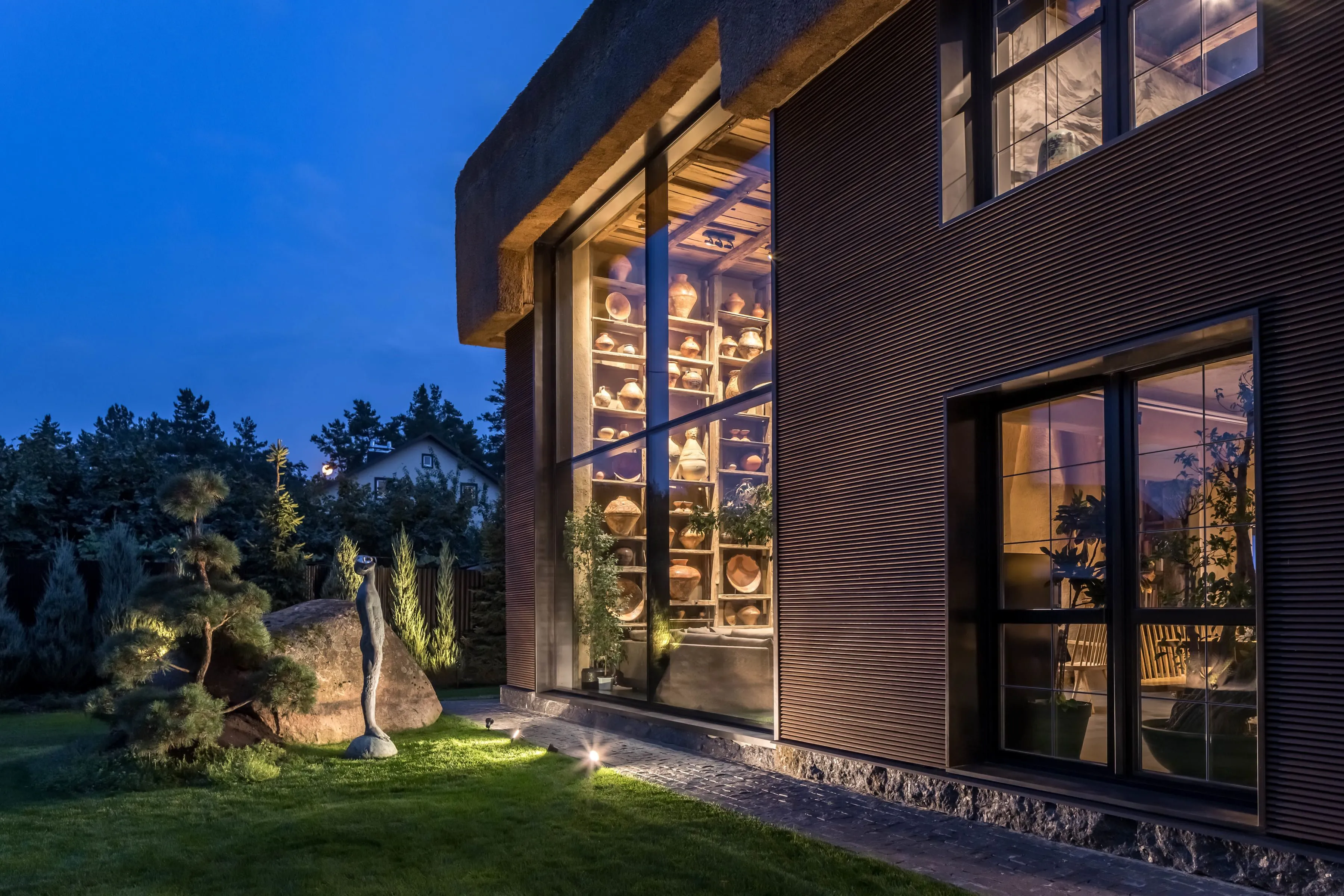 Об’єднати два поверхи — єдине правильне рішення для цього об’єкту. Тому що усі архітектори розуміють, що простір і світло — це найкраще, що можна подарувати будинку. З величезного вікна відкривається панорама на весь сад, а сімейні історії оберігає мовчазний гість — скульптура «Дощ» від Назара Білика.