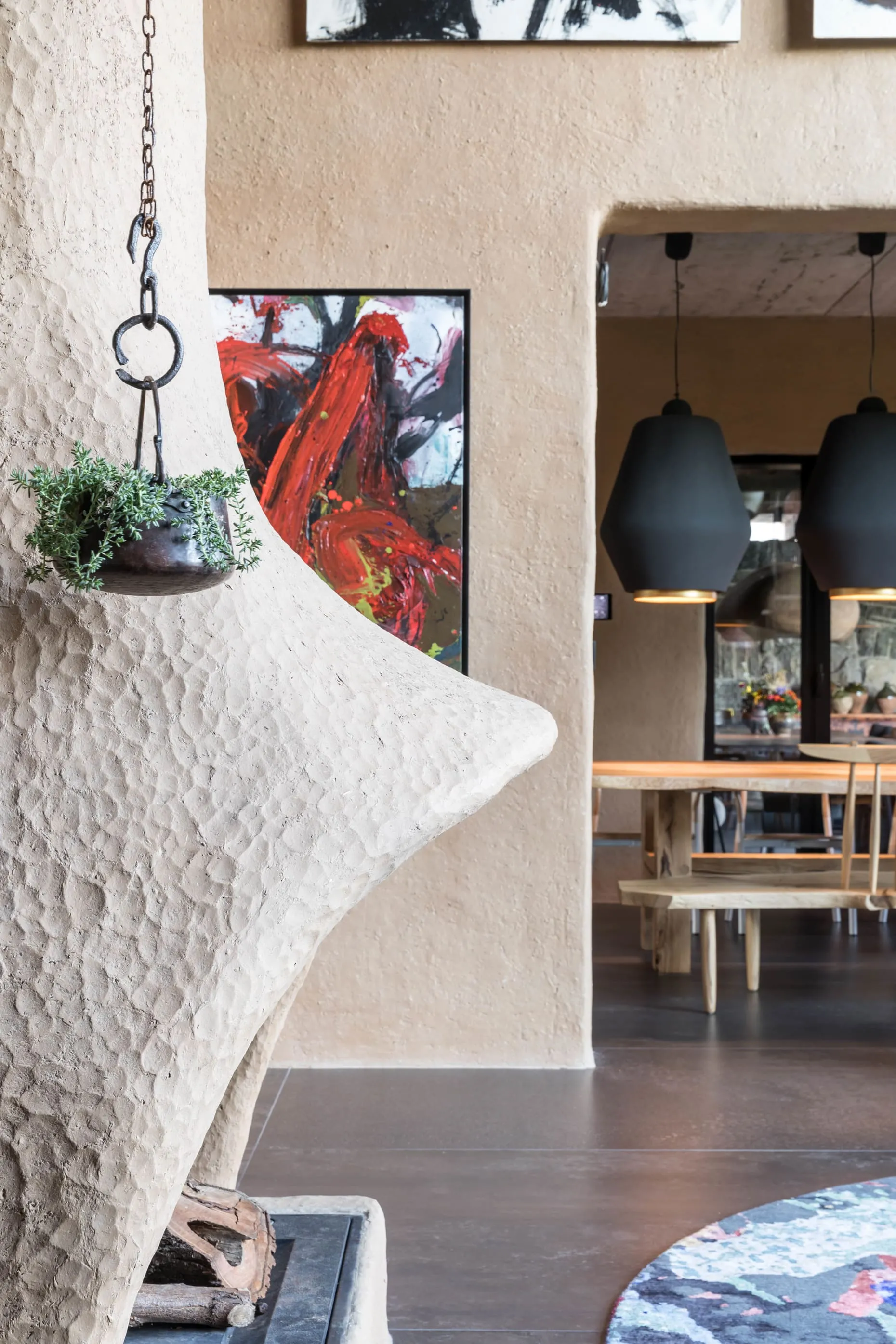 Крок в дім і глиняна прохолода поглинає не тільки телефонний зв’язок, а й усі тривоги, «терміново» і «потрібно». Праворуч побігли сходи на другий поверх, а по ліву руку розташувалася основна зона будинку.