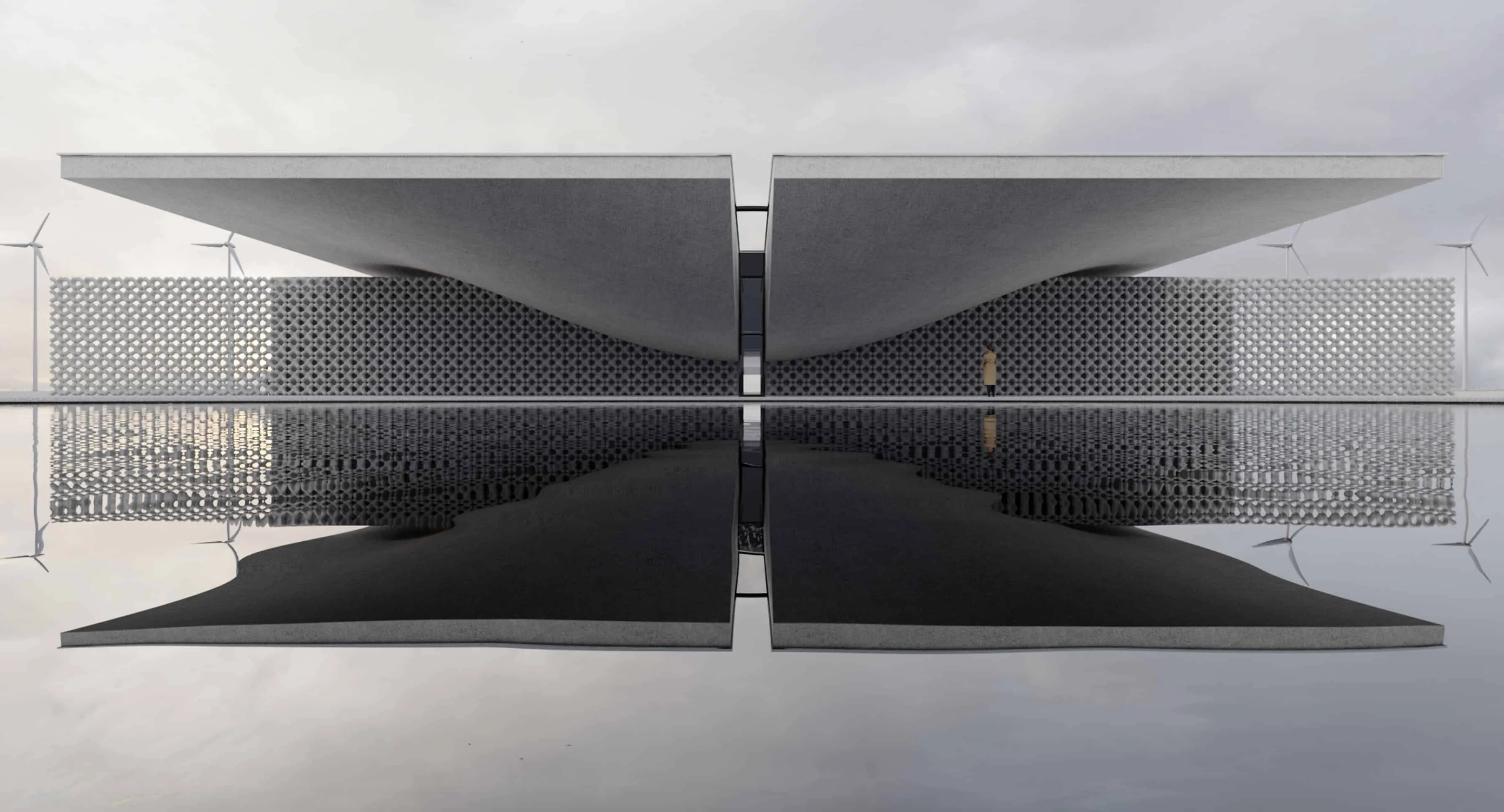 Завдання полягало в створенні сучасного відвідувального центру, з включеним музеєм, кафе зоною та конференц-залом у контексті поля з електро вітряками.